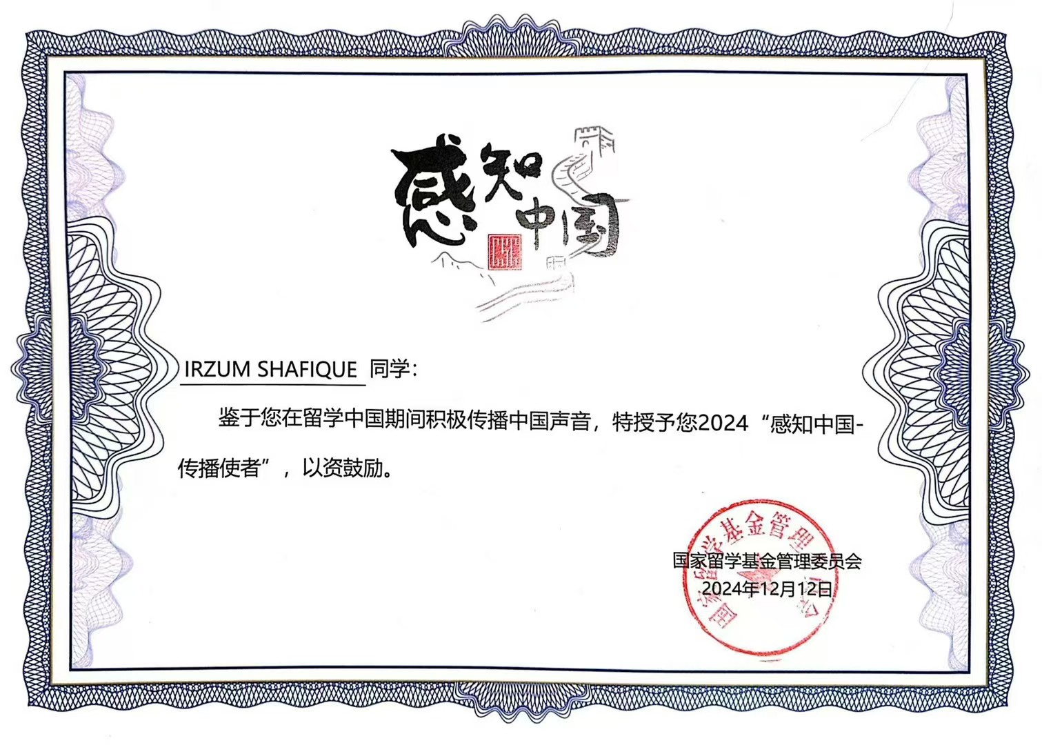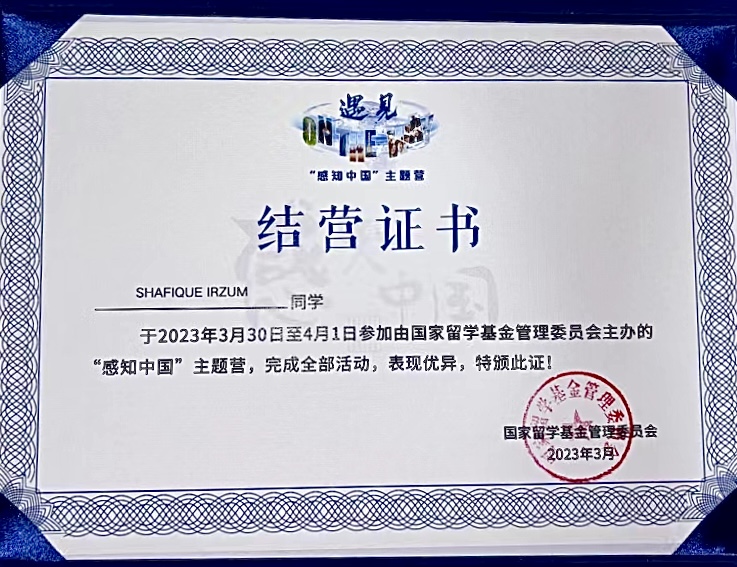 the third position on National level in China for My beautiful encounter with China competition. Apart from that receiving the Outstanding Trainee Award at the Discover Jiangsu International Summer Program.